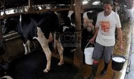Mahasiswa UB Kembangkan Alat Terapi Mastitis untuk Sapi Perah Pekerja membawa susu sapi hasil perahan di tempat peternakan sapi perah di Duren Tiga, Jakarta, Selasa (15/9). (Republika/Agung Supriyanto).